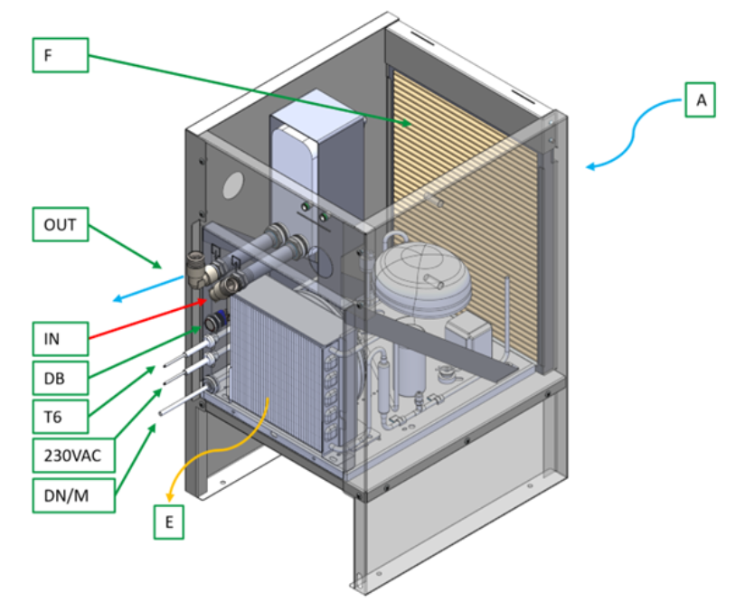 Twee maal per jaar filter F van toevoer omgevingslucht vervangen