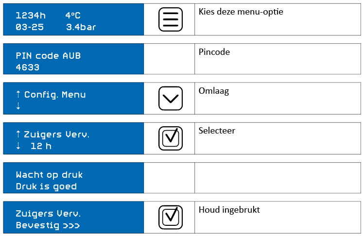 Controleer zuiger en klep op slijtage en schade